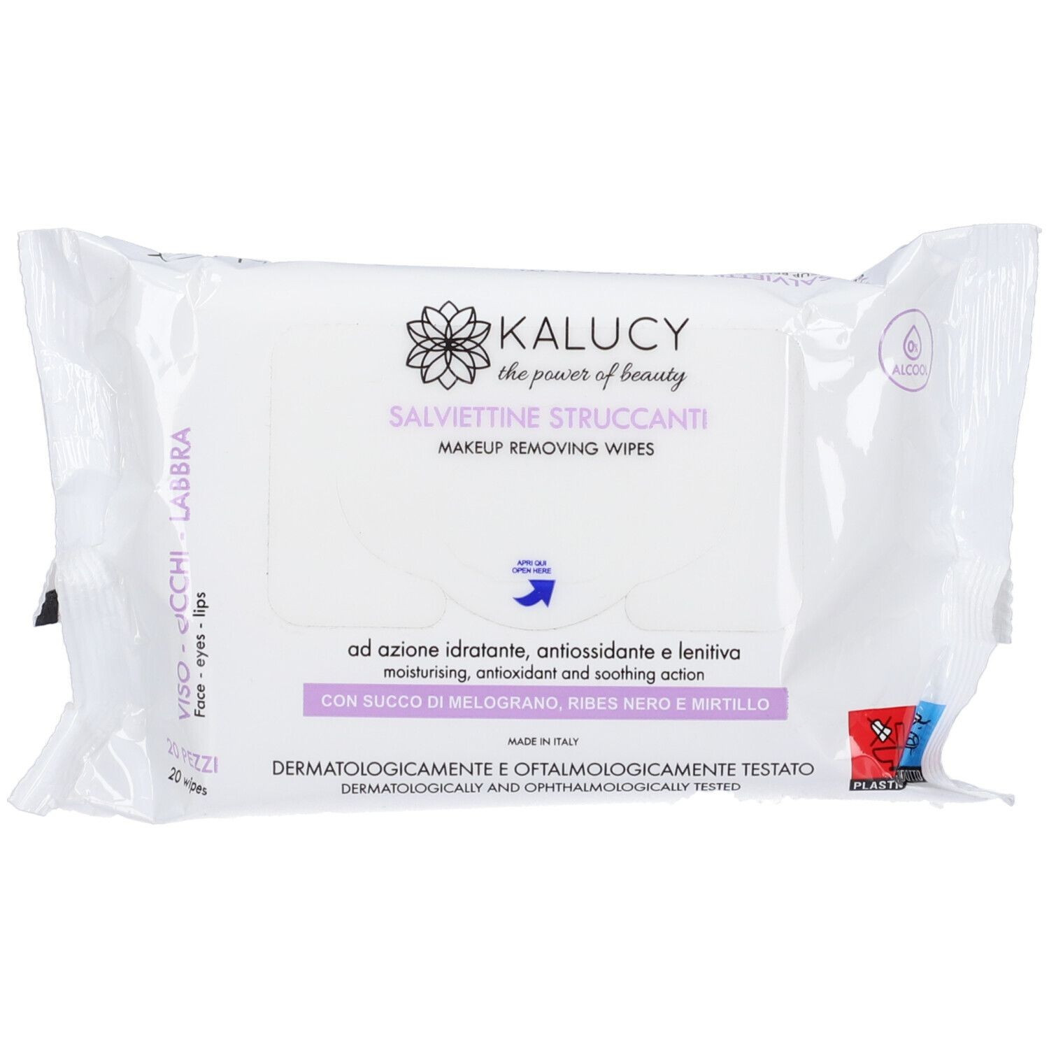 Le Kalucy salviette struccanti ,combinano il profumo di melograno, ribes nero e mirtillo, garantendo un’esperienza di benessere per ogni tipo di pelle.
