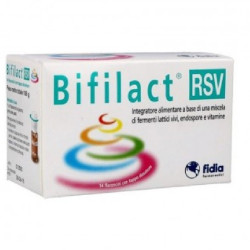 Bifilact RSV A base di: 1 ceppo gastroresistente sporificato, 4 ceppi di fermenti lattici vivi, vitamine del gruppo B. Integratore alimentare a base di fermenti lattici vivi, utili per favorire l'equilibrio della flora batterica intestinale; grazie alla presenza delle vitamine B6 e B12, contribuisce al regolare funzionamento del sistema immunitario. La sua formulazione è inoltre caratterizzata dall'aggiunta della niacina, utile al mantenimento dello stato di normalità della pelle.A base di: 1 ceppo gastroresistente sporificato, 4 ceppi di fermenti lattici vivi, vitamine del gruppo B.